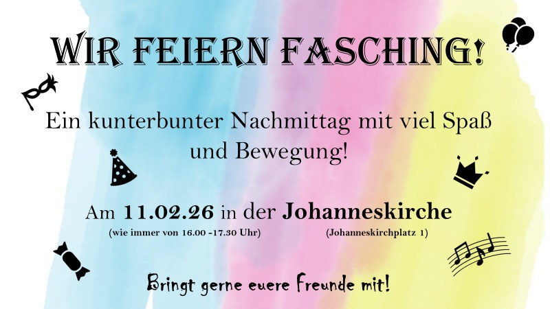 Am Samstag, den 14. Februar 2026, ist es wieder soweit: wir feiern Kirche Kunterbunt. Im Pfarrzentrum von St. Augustin (Obere Klinge 2, Coburg) erwarten euch zahlreiche Stationen, an denen ihr aktiv und kreativ werden könnt. Unser Motto ist diesmal "Jeder Mensch ist wichtig".